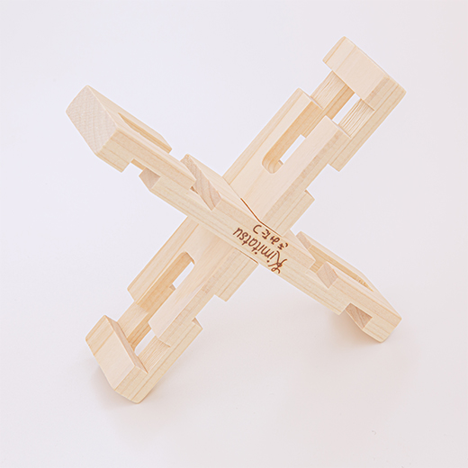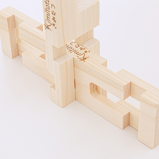 ピース同士がしっかり噛み合う摩擦を生むために、無塗装のヒノキで仕上げました。